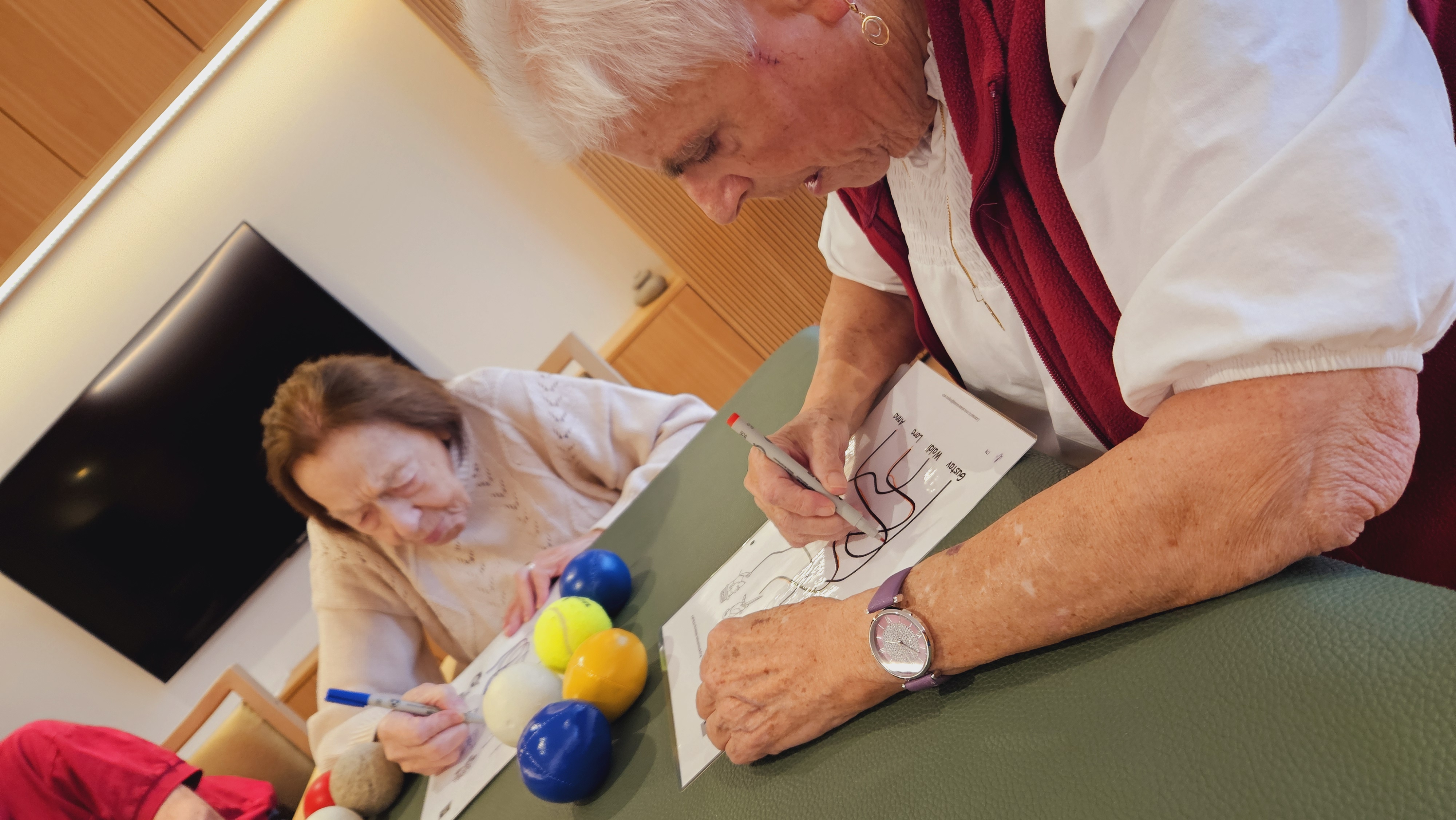 Im SeneCura Sozialzentrum Hard – Haus in der Wirke finden regelmäßige Gruppenarbeiten mit den Bewohner:innen statt. Die letzte Gruppenarbeit hat mit Jazz Musik begonnen. Die Mitarbeiter:innen machten Fingergymnastik mit und ohne Jonglierbälle für die Verbesserung der Fingerbeweglichkeit und Feinmotorik. Mit Schreibübungen versucht man das Kurzzeitgedächtnis zu verbessern und mit dem biographischen Thema „Tiere im Bauernhof“ wird das das Langzeitgedächtnis abgerufen. Die Bewohner:innen haben mit Freude an allen Übungen teilgenommen, denn der Spaßfaktor blieb selbstverständlich nicht aus. Außerdem stärken die Gruppenarbeiten die Gemeinschaft und Zugehörigkeit innerhalb des Hauses.