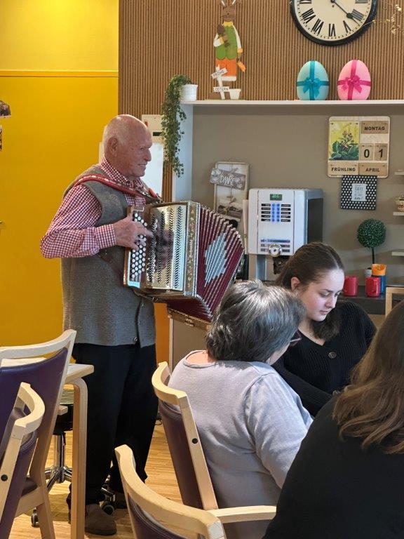 Am Ostersonntag erlebten die Bewohner:innen der Demenzstation des SeneCura Sozialzentrums Hard – Haus In der Wirke einen köstlichen Osterbrunch, bei dem auch die Angehörigen eingeladen wurden. In Summe sind etwa 50 Personen zusammengekommen, welche gemeinsam Ostern gefeiert haben. Das Personal hat von zuhause aus Kuchen gebacken und das Küchenteam hat schöne Platten hergerichtet. Der Osterbrunch wurde unter anderem von Herr Zortea musikalisch begleitet. Alle Anwesenden genossen die gemeinsame Zeit bei leckeren Köstlichkeiten und tollen Gesprächen.