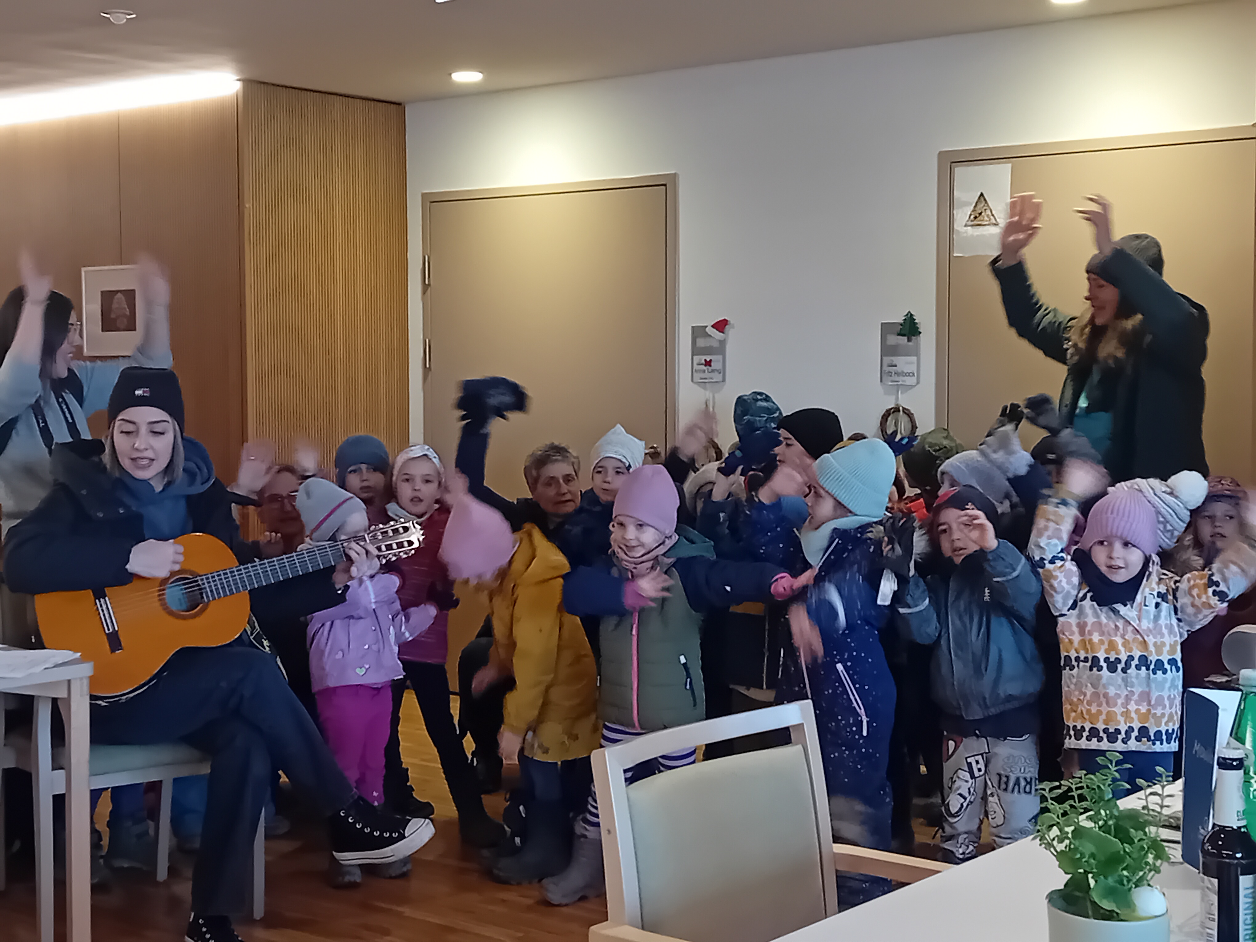 Kürzlich erhielten die Bewohner:innen des SeneCura Sozialzentrum Hard einen besonderen Besuch. Der Kindergarten Hölzeleweg von Hard kam ins Haus und begeisterten die Senior:innen mit Weihnachtsliedern, die gemeinsam gesungen wurden. Groß und Klein genossen den gemeinsamen Advent-Vormittag sehr. Vielen Dank für den Besuch!